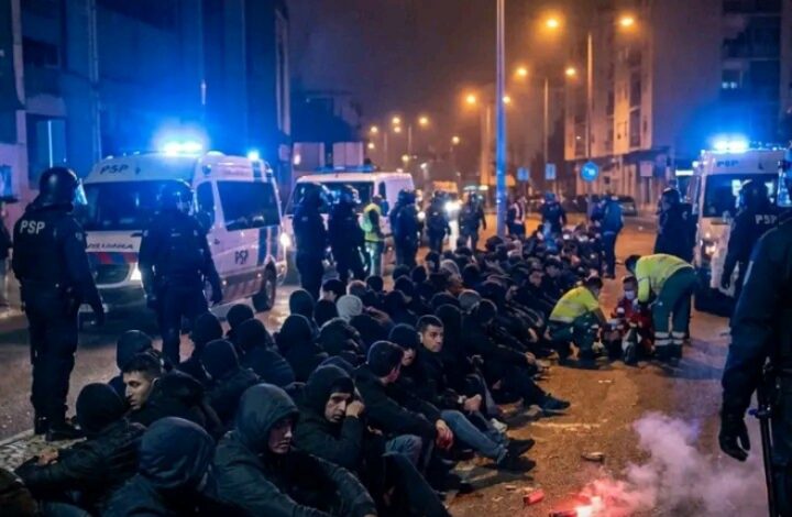 «Foi apreendido diverso material suspeito de ter sido usado na rixa, nomeadamente artigos de pirotecnia deflagrados, ferros, pedras, cintos, paus, um martelo, uma arma branca e material de ocultação de identidade (balaclavas)», lê‑se na mesma nota.